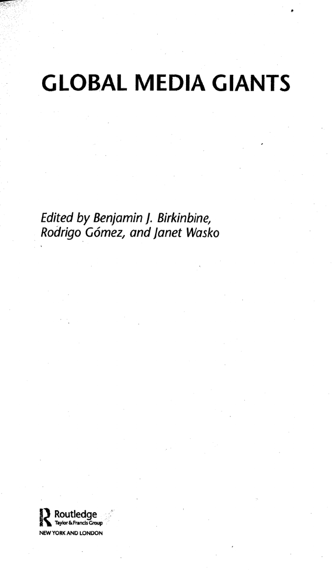 Global Media Giants takes an in-depth look at how media corporate power works globally, regionally, and nationally, investigating the ways in which the largest and most powerful media corporations in the world wield power. Case studies examine not only some of the largest media corporations (News Corp., The Microsoft Corporation) in terms of revenues, but also media corporations that hold considerable power within national, regional, or geolinguistic contexts (Televisa, The Bertelsmann Group, Sony Corporation). Each chapter approaches a different corporation through the lens of economy, politics, and culture, giving students and scholars a thoughtful and data-driven guide with which to interrogate contemporary media industry power.