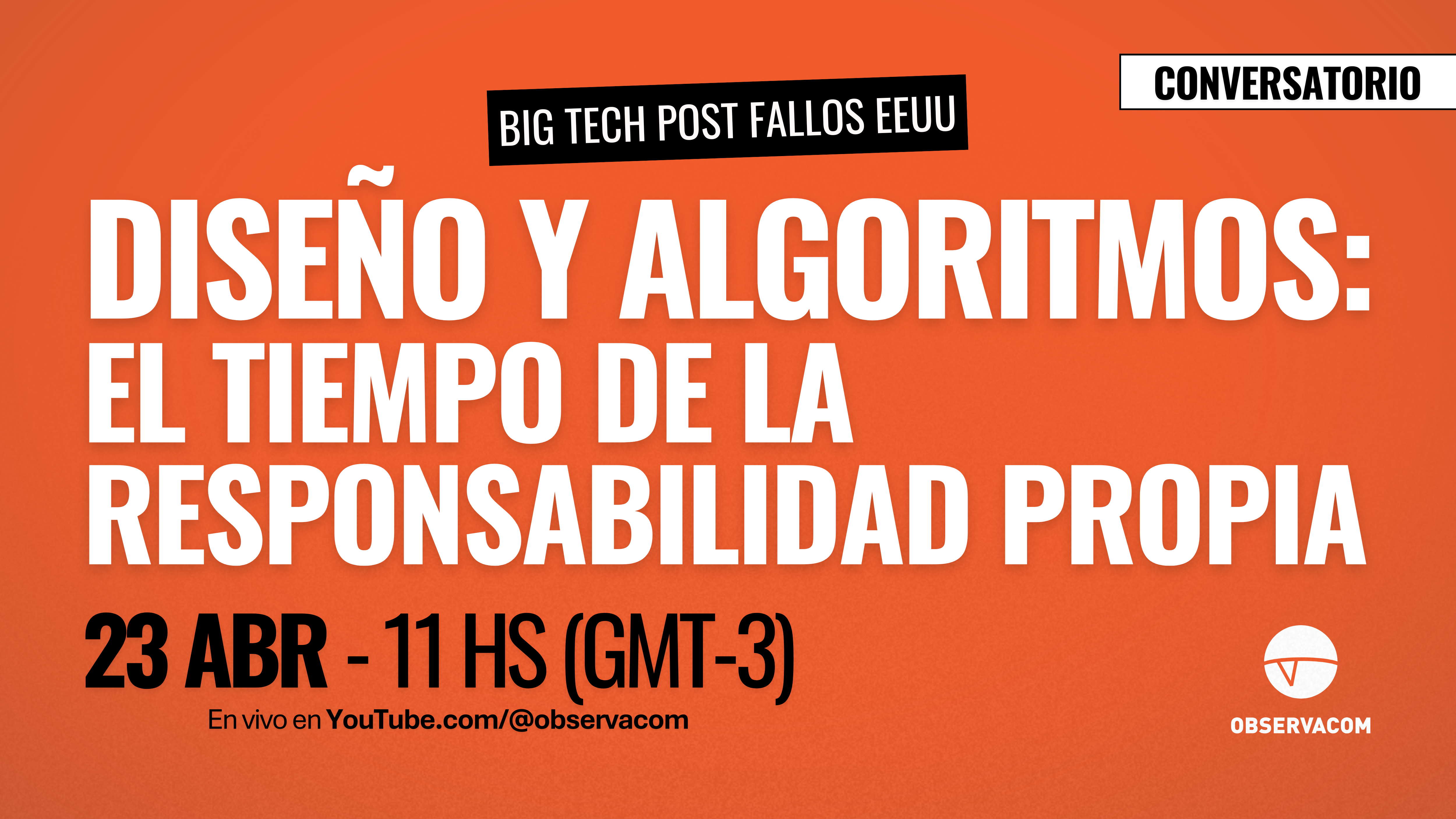 OBSERVACOM realizará el conversatorio virtual “Diseño y algoritmos: el tiempo de la responsabilidad propia” el próximo jueves 23 de abril a las 11 hs (GMT-3), con transmisión en vivo y una duración de una hora y media.